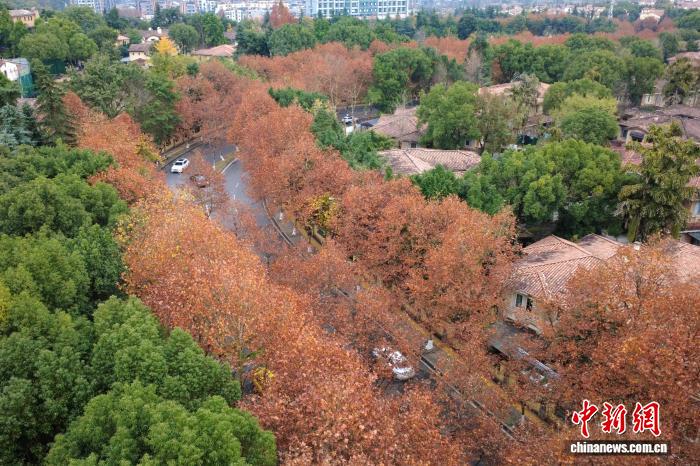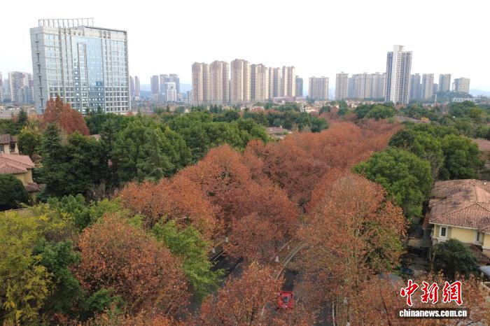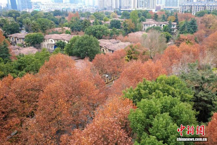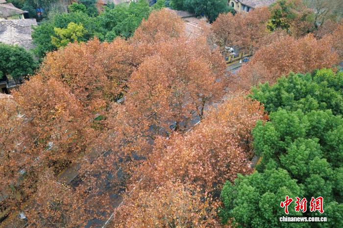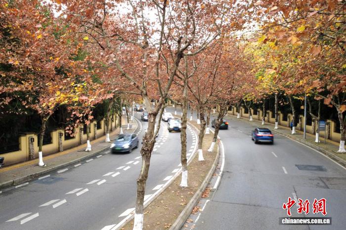 图为梧桐树叶色调光后好如绘。记者 肖江川 摄